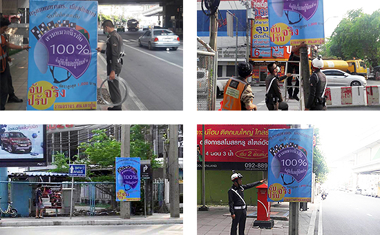 ด้าน พล.ต.ต.ธีรศักดิ์ กล่าวว่า การดำเนินการแบ่งออกเป็นขั้นตอน ดังนี้ 1. เจ้าหน้าที่ตำรวจจราจร ในสังกัด บก.น. 1-9 และ บก.จร. ซึ่งพบเห็นผู้ขับขี่หรือผู้โดยสารที่ไม่สวมหมวกนิรภัย จะดำเนินการตามกฎหมายโดยการออกใบสั่งจราจรในข้อหา “ไม่สวมหมวกนิรภัยในขณะขับขี่รถจักรยานยนต์” หรือ ข้อหา “เป็นผู้ขับขี่ยินยอมให้ผู้โดยสารไม่สวมหมวกนิรภัยในขณะโดยสารรถจักรยานยนต์” ตามมาตรา 122 แห่งพระราชบัญญัติจราจรทางบก พ.ศ.2522 (แล้วแต่กรณี) โดยจะไม่อนุญาตให้ผู้ขับขี่หรือผู้โดยสาร ขับขี่หรือโดยสารรถจักรยานยนต์ต่อไปอย่างผิดกฎหมายอีก จนกว่าผู้ขับขี่หรือผู้โดยสารจะสวมหมวกนิรภัยและปฏิบัติตามกฎหมายที่มีอยู่อย่างครบถ้วน